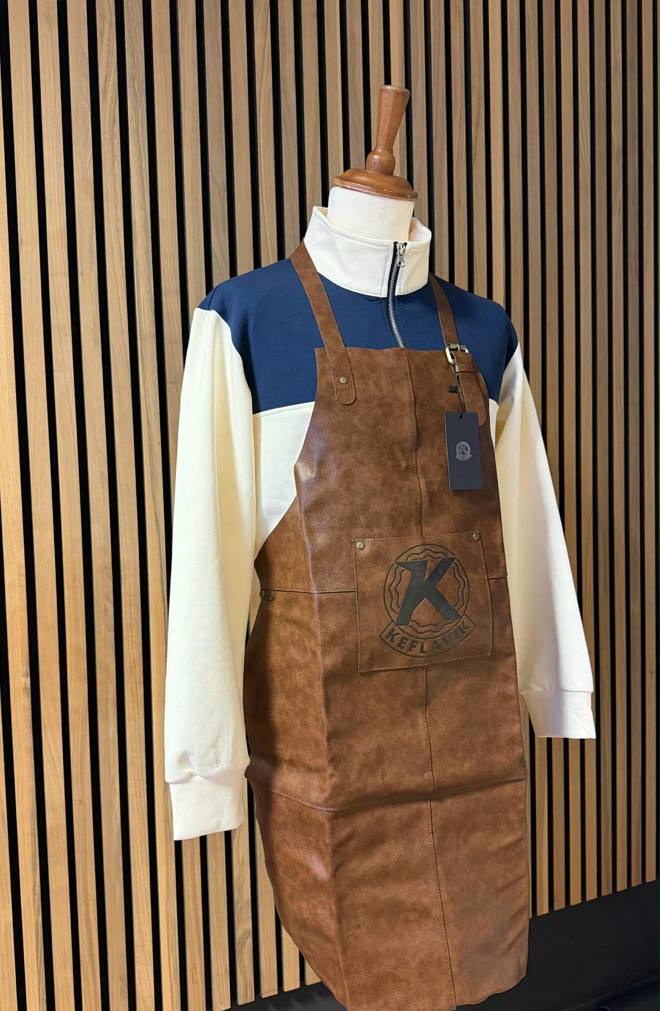 Leður svunta með Keflavíkurmerkinu – 100% leður og merkið er lasergrafið í